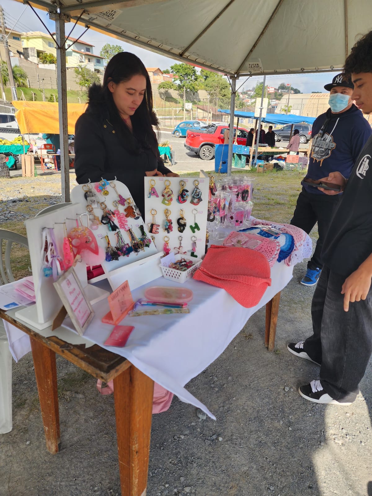 Jaqueline Looze, que confecciona peças em cerâmica e argila, conta que a feira superou as suas expectativas e que era um sonho poder participar. “Vender na feira em Apiaí, era algo que nós, do Ateliê Arte Looze, queríamos a muito tempo. Minha mãe (Diná) vivia falando sobre isso e nem acreditamos quando o Sebrae-SP entrou em contato conosco. Aceitamos de primeira, sem sombra de dúvida. A iniciativa foi muito legal, porque o público maior são os próprios munícipes e é de extrema importância que quem more aqui, conheça o que tem na cidade, com que qualidade é oferecido, como é o atendimento e tantas outras coisas que conseguimos expressar quando estamos fisicamente em uma feira. Isso é maravilhoso, porque acabamos entendendo melhor o público e mesmo que eles não comprem, o importante é conhecerem e saberem o que tem. Quando chegar alguém querendo comprar, eles vão saber falar e nos indicar. Consegui vender meus produtos, mesmo sendo um dia frio e de pouco movimento, saímos muito alegres com a venda e com a divulgação que conseguimos fazer. Gostaria muito que acontecesse mais eventos como esse junto com a feira livre, uma vez por mês seria perfeito”, comentou a artesã.
