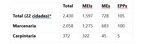 No dia 19 de março é celebrado o dia do carpinteiro e do marceneiro e um levantamento do Sebrae-SP traz números interessantes nas 22 cidades da região de Campinas*: são 2.430 profissionais nas duas atividades, entre eles: 1.597 microempreendedores individuais (MEIs), 728 microempresas (MEs) e 105 empresas de pequeno porte (EPPs). As cinco cidades da região com mais profissionais de carpintaria e marcenaria são: Campinas (915), Hortolândia (300), Indaiatuba (251), Sumaré (218) e Valinhos (128).