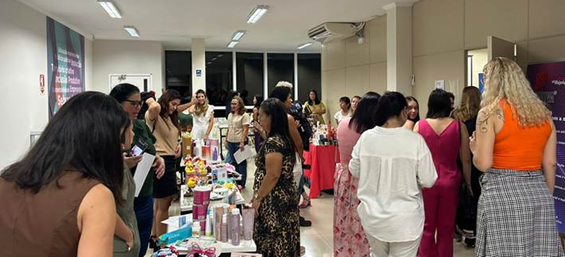 Além do conteúdo, a feira de empreendedoras foi um dos destaques da noite. Durante o evento, participantes expuseram e comercializaram produtos e serviços, transformando o espaço em uma vitrine para negócios locais e ampliando as possibilidades de novos contatos e parcerias.