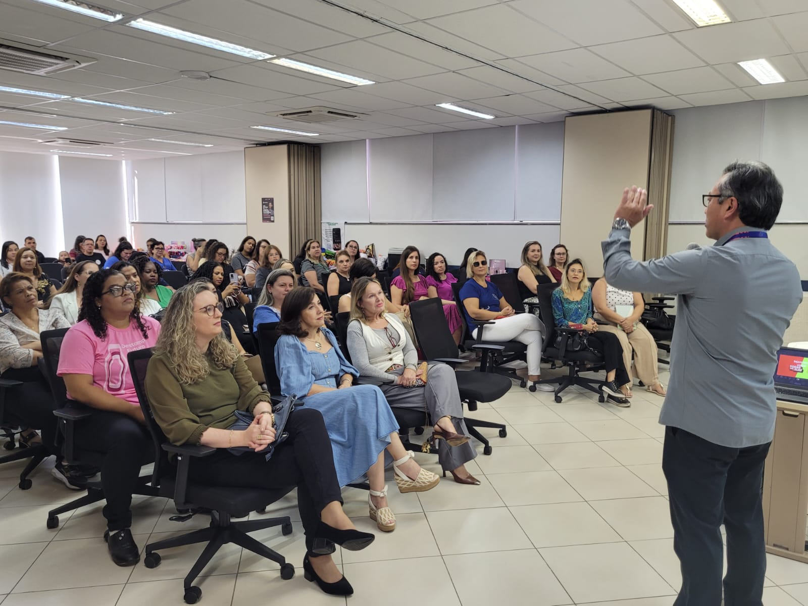 A psicóloga Alessandra Salina Brandão ministrou a palestra “Mulheres que Inspiram: o Poder das Soft Skills”, abordando os desafios da mulher moderna diante das múltiplas cobranças na vida pessoal e profissional. Com um olhar sensível sobre a sobrecarga e a falta de compreensão enfrentadas por muitas mulheres, Alessandra destacou a importância do autoconhecimento e de habilidades como autocompaixão, inteligência emocional, cuidados emocionais e habilidades sociais, essenciais para o fortalecimento feminino, despertando empatia e solidariedade entre os presentes.