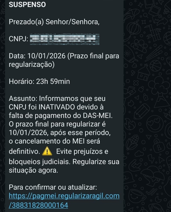 Mensagens falsas sobre cancelamento de CNPJ colocam MEIs em alerta em Barretos e região