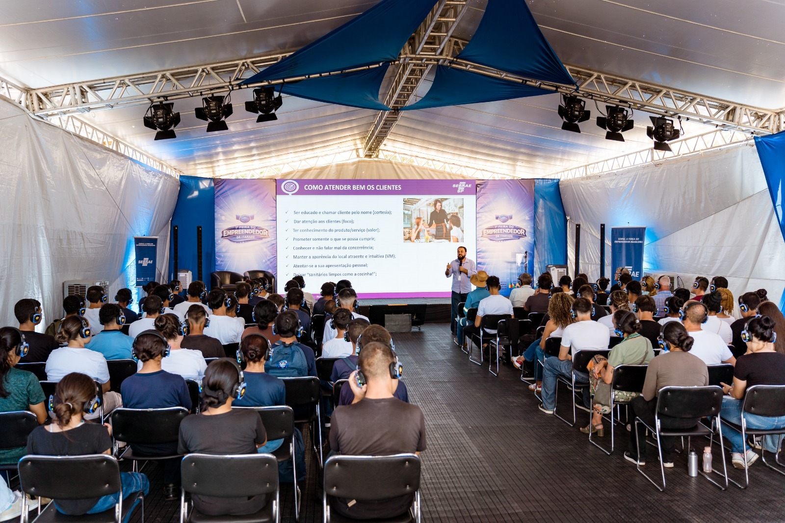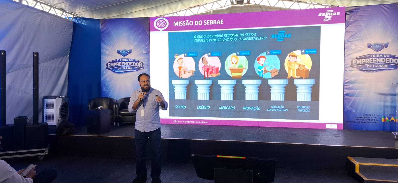 O Sebrae-SP, em parceria com a Prefeitura Municipal de Itararé e a Secretaria de Cultura e Eventos, promoveu no primeiro dia da 1ª Feira do Empreendedor de Itararé, a capacitação “Faça do atendimento uma ótima experiência”. Realizada como parte da programação oficial do evento, que ocorreu durante três dias no Centro de Eventos, a palestra gratuita reuniu empreendedores e comerciantes interessados em aprimorar o relacionamento com os clientes e fortalecer seus negócios, além de membros da Guarda Mirim Municipal, com vistas ao fortalecimento do empreendedorismo jovem no município.