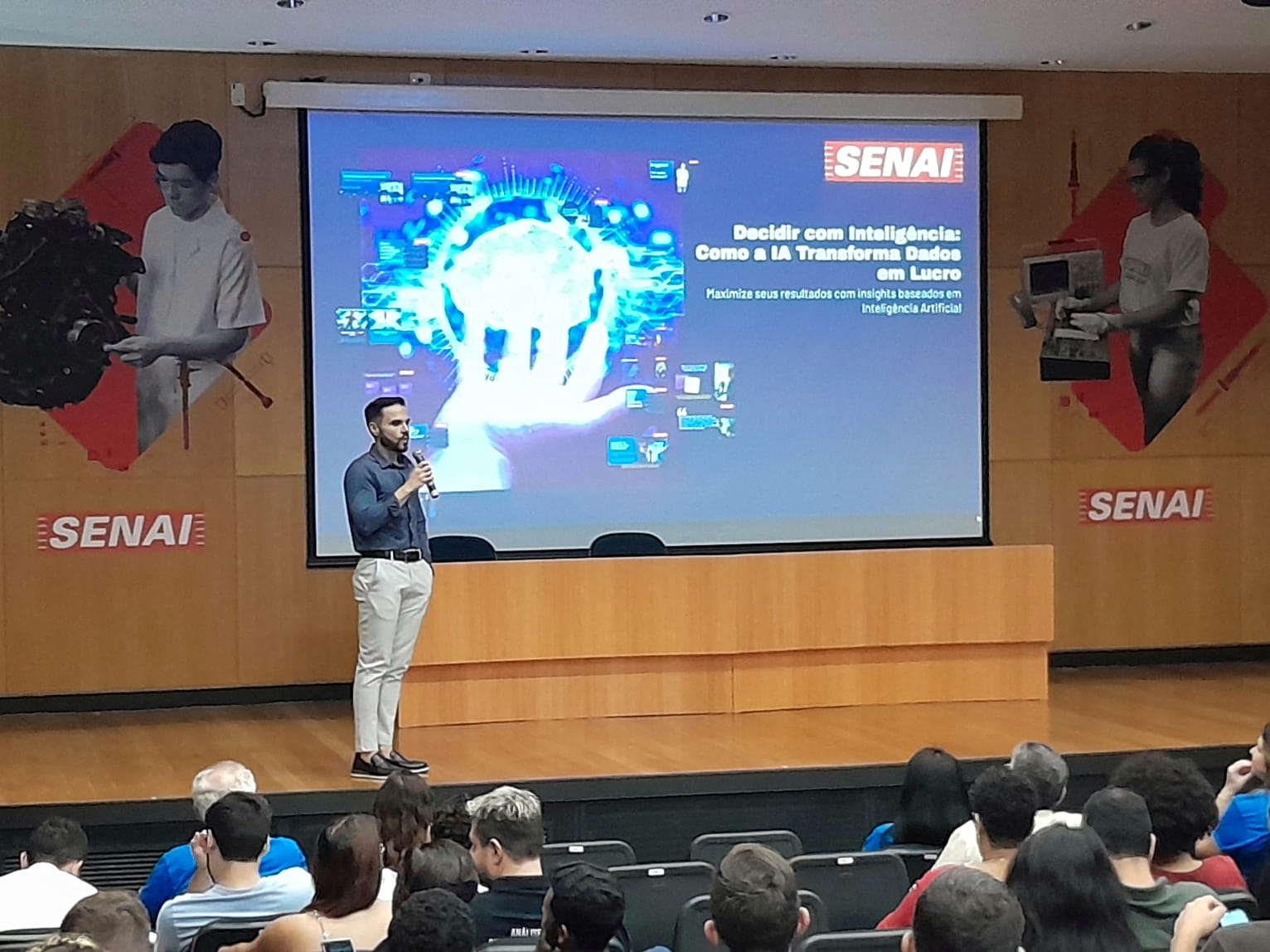 A programação também trouxe conteúdos técnicos voltados à inovação. O professor e consultor do Senai São Paulo Murilo Serafim Rossi abordou em sua palestra a importância da tomada de decisão baseada em dados e o papel da inteligência artificial nesse processo. Ele explicou conceitos fundamentais sobre a tecnologia e destacou como ela pode auxiliar empresas a analisarem informações de forma mais clara, tornando as decisões mais assertivas.